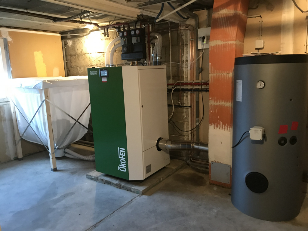 Installation d'une chaudière à granulés de bois OKOFEN en remplacement d'une chaudière Fioul dans habitation de 150 m2 à MIGNE AUXANCES 86